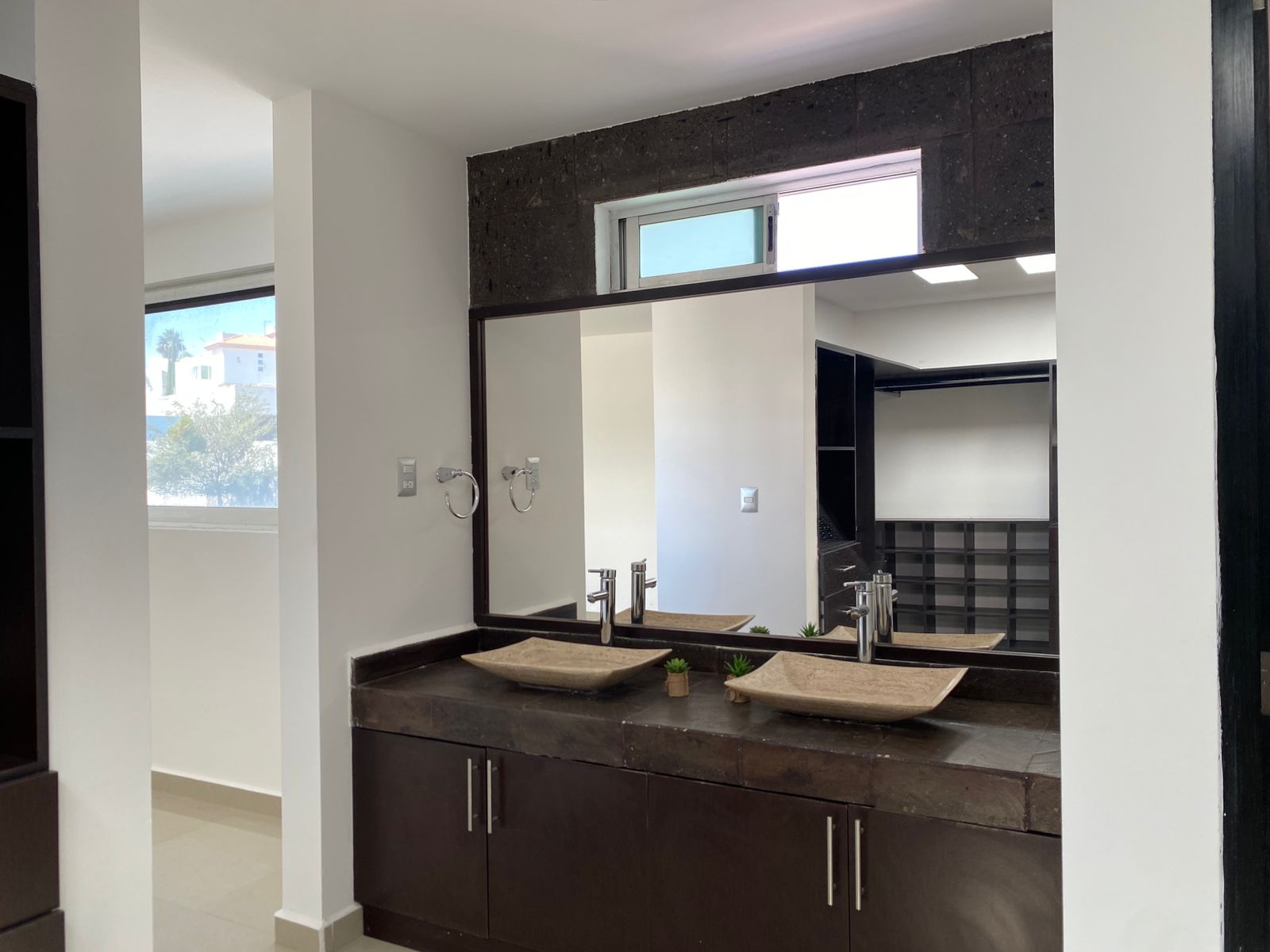 | FIADOR con propiedad en Querétaro o PÓLIZA JURÍDICA, 12 meses de contrato, depósito y primera renta por adelantado. SERVICIOS DE AGUA, LUZ, GAS ESTACIONARIO Y EL INTERNET SE PAGAN APARTE. La casa cuenta con 2 plantas, 2.5 baños, las 3 recamaras tienen closets y la principal con vestidor amplio, traspatio, cochera abierta para 2 autos, etc. El domo permite que la casa sea fresca y bien iluminada. En planta baja se cuenta con estudio, medio baño, espacio de sala de estar, comedor y cocina equipada con estufa, extractor / campana, lavabo y cajones. Área de lavado techada, cisterna, tinaco en azotea, etc. EL MANTENIMIENTO YA ESTA INCLUIDO. Tiene 128M2T y 176M2C. No factura, sí mascotas. |