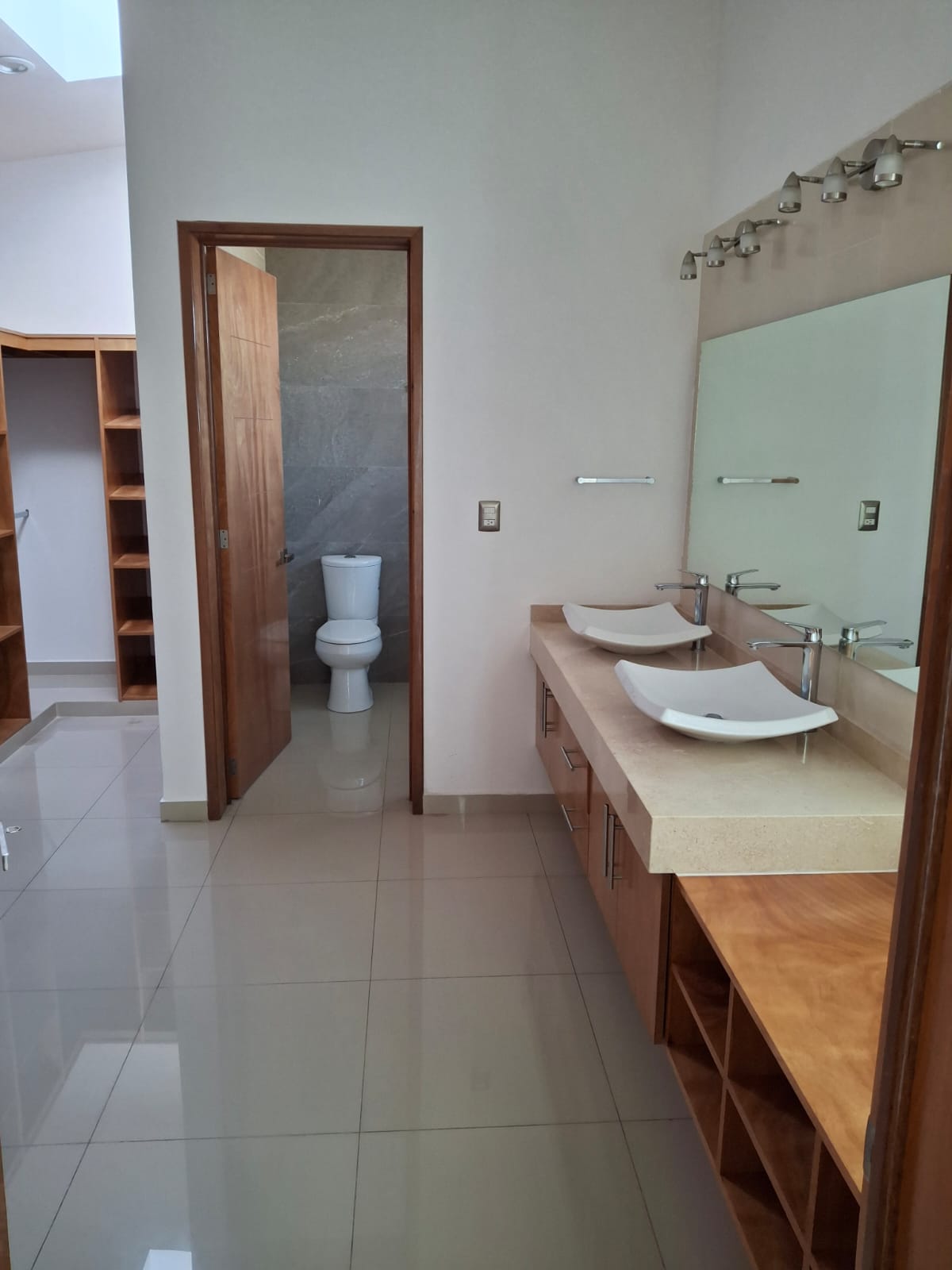 | FIADOR con propiedad en Querétaro o PÓLIZA JURÍDICA, 12 meses de contrato, depósito y primera renta por adelantado. SERVICIOS DE AGUA, LUZ, GAS ESTACIONARIO Y EL INTERNET SE PAGAN APARTE. Excelente CASA en PRIVADA en CENTRO SUR. En planta baja se encuentra 1 estudio, 2 baños completos, espacio de sala y comedor, hermosa y amplia cocina con barra desayunadora y alacena. Patio posterior con jardín y área de lavado techada. En planta alta cuenta con 3 habitaciones, tres baños completos con cancel, 1 con closet y 2 con vestidor, balcón y área de TV. La cochera es abierta para 2 autos, y está equipada con cisterna, persianas, mosquiteros, bodega y boiler con conexiones para lavadora, secadora y lavadero. La privada Claustros de Santiago tiene 120 lotes. En las áreas comunes está la alberca, juegos infantiles y salón de usos múltiples con estacionamiento de visitas, vigilancia 24/7 y CCTV. Cuenta con 293M2T y 283M2C. El mantenimiento ya está incluido en la renta mensual. Se aceptan mascotas, niños y estudiantes. SÍ CFDI. Precio Negociable. |