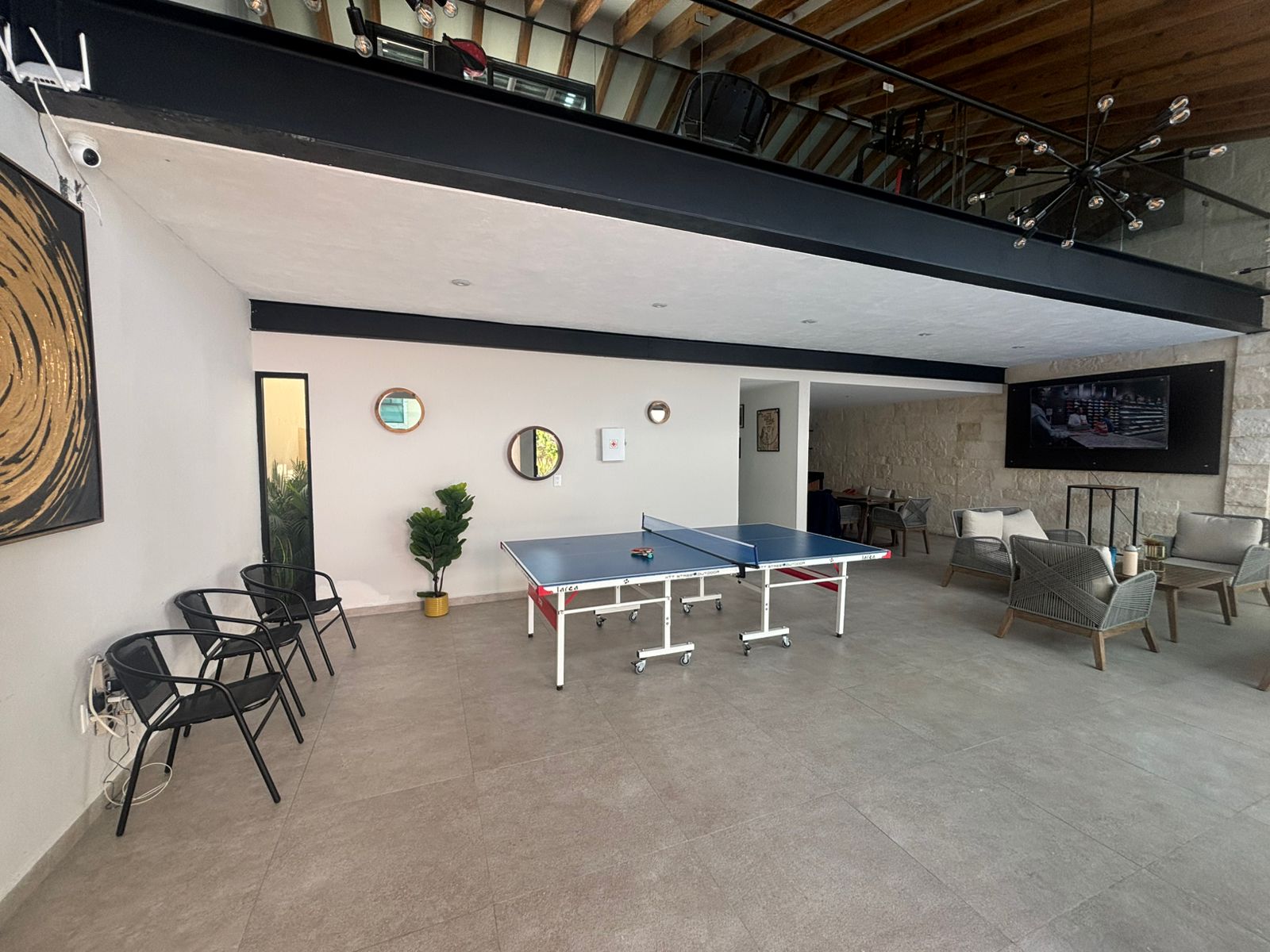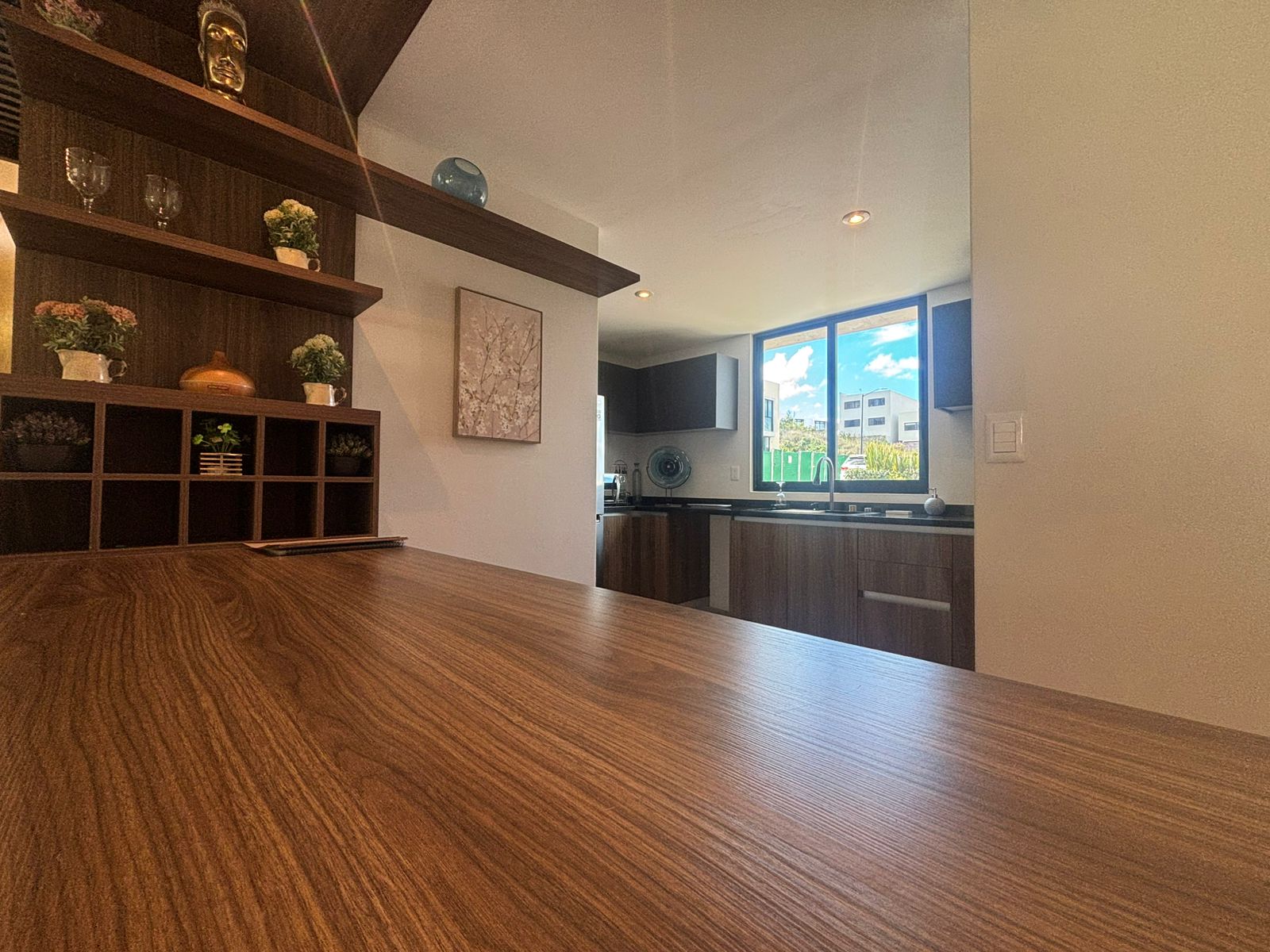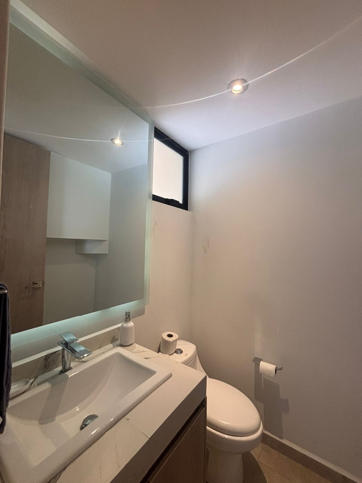 | Estrena en el primer cuadro de Zibatá, privada de solo 49 lotes. Esta casa cuenta con 3 niveles, en planta baja tiene medio baño, bodega, cocina equipada con barra, área de lavado, sala de estar y comedor con jardín posterior. En planta alta presenta 2 baños completos, 3 habitaciones con closets y sala de TV con balcón. Equipadas con closets, canceles de baño, espejos, etc. El roof top cuenta con baño completo, family room con closet y escritorio. Son 148M2T y 221M2C. Las áreas comunes están vigiladas por CCTV, alberca, sala, asadores, mesas de ping pong y GYM. |