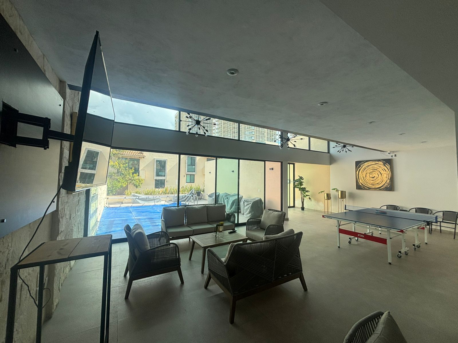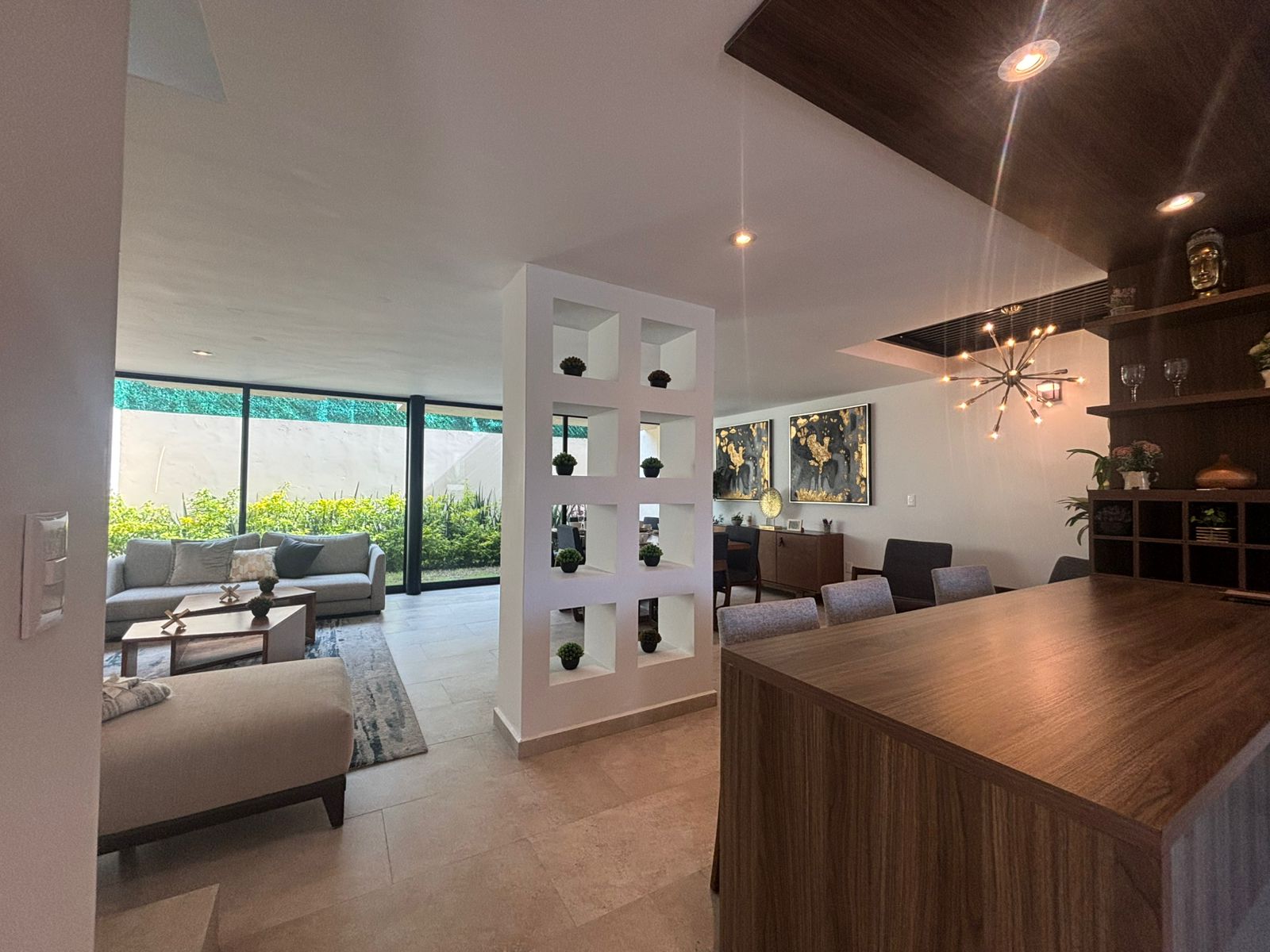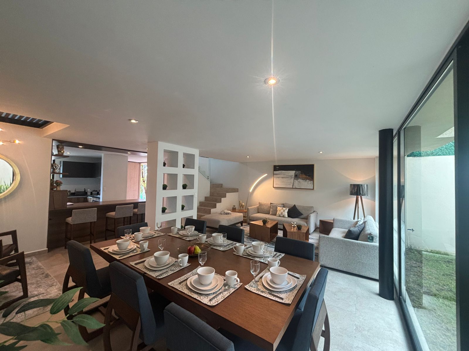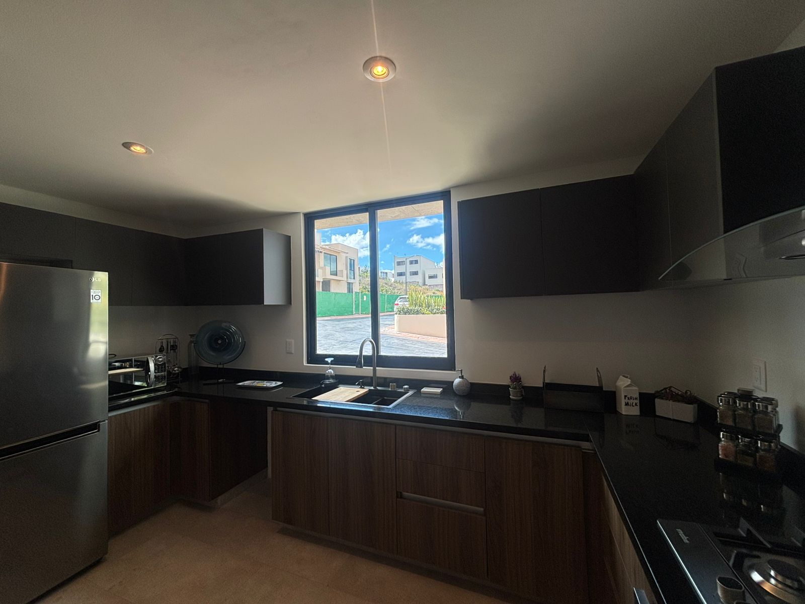 | Estrena en el primer cuadro de Zibatá, privada de solo 49 lotes. Esta casa cuenta con 3 niveles, en planta baja tiene medio baño, bodega, cocina equipada con barra, área de lavado, sala de estar y comedor con jardín posterior. En planta alta presenta 2 baños completos, 3 habitaciones con closets y sala de TV con balcón. Equipadas con closets, canceles de baño, espejos, etc. El roof top cuenta con baño completo, family room con closet y escritorio. Son 148M2T y 221M2C. Las áreas comunes están vigiladas por CCTV, alberca, sala, asadores, mesas de ping pong y GYM. |